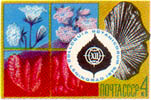 Pictorial elements of the stamp with text, arranged in flower shape at left.